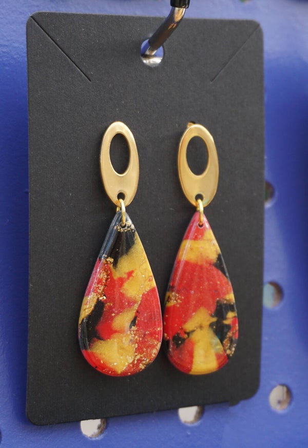 Knopje is goudkleurigKleuren: Zwart, rood, goud en goud glitter